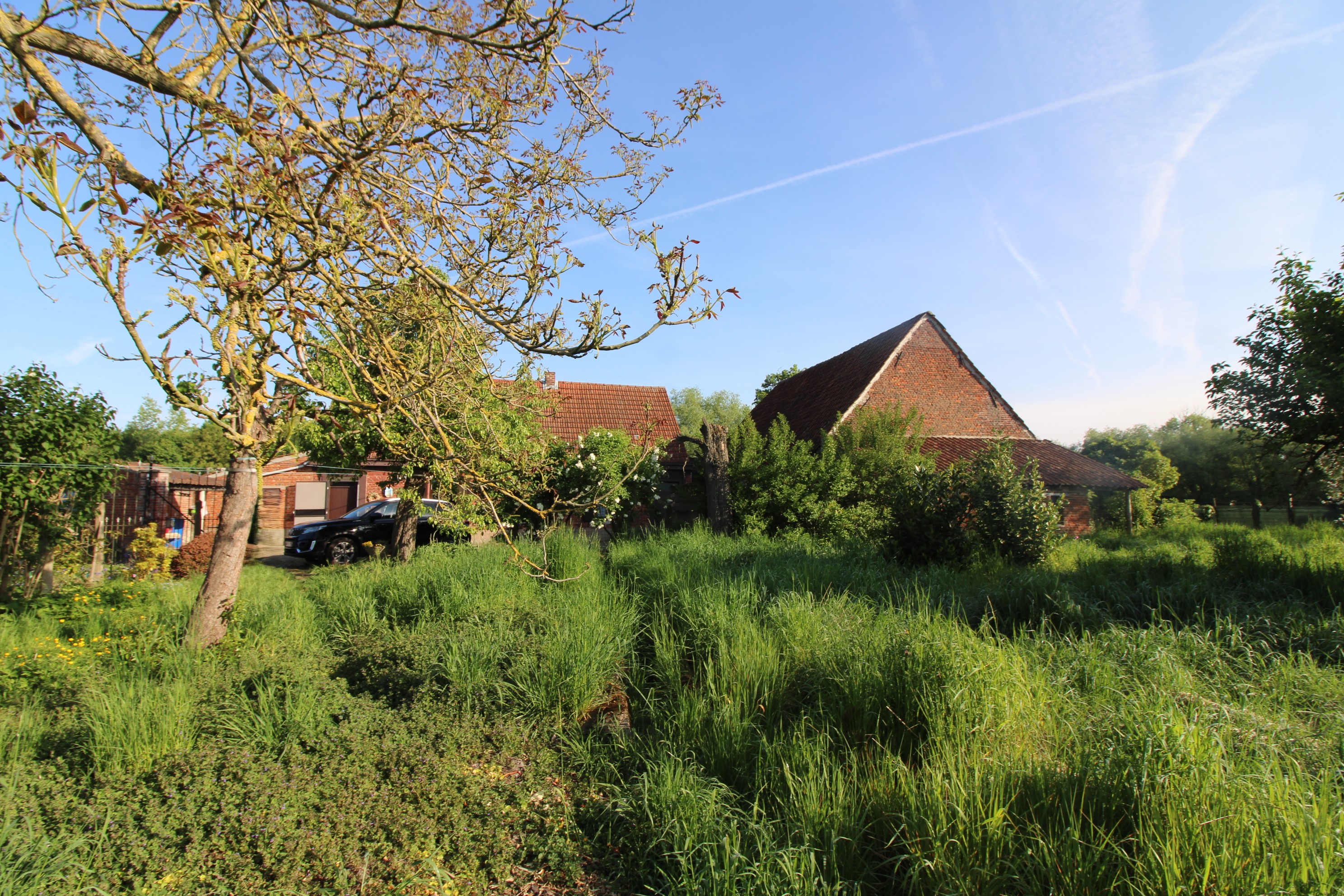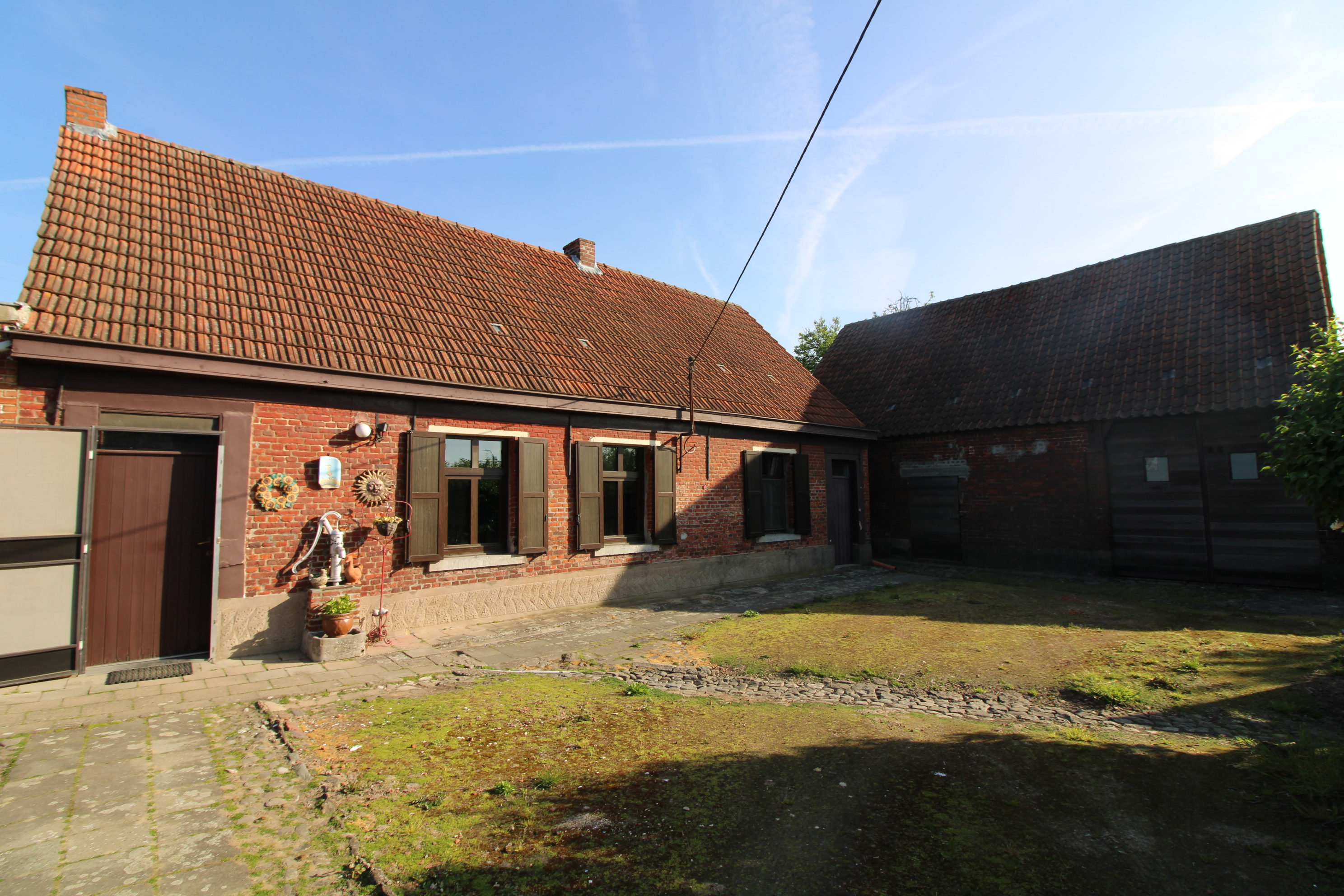 De stallingen bieden ook nog veel mogelijkheden. Verwarming met kachel op stookolie. PVC en houten ramen met dubbele alsook enkele beglazing.