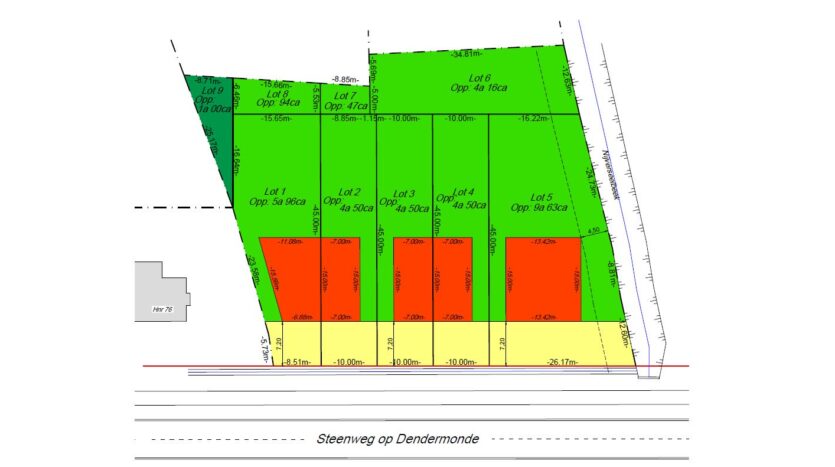 De kosten voor opmeten en afpalen zijn ten laste van de koper, alsook deelname in de kosten van de verkavelingsakte.